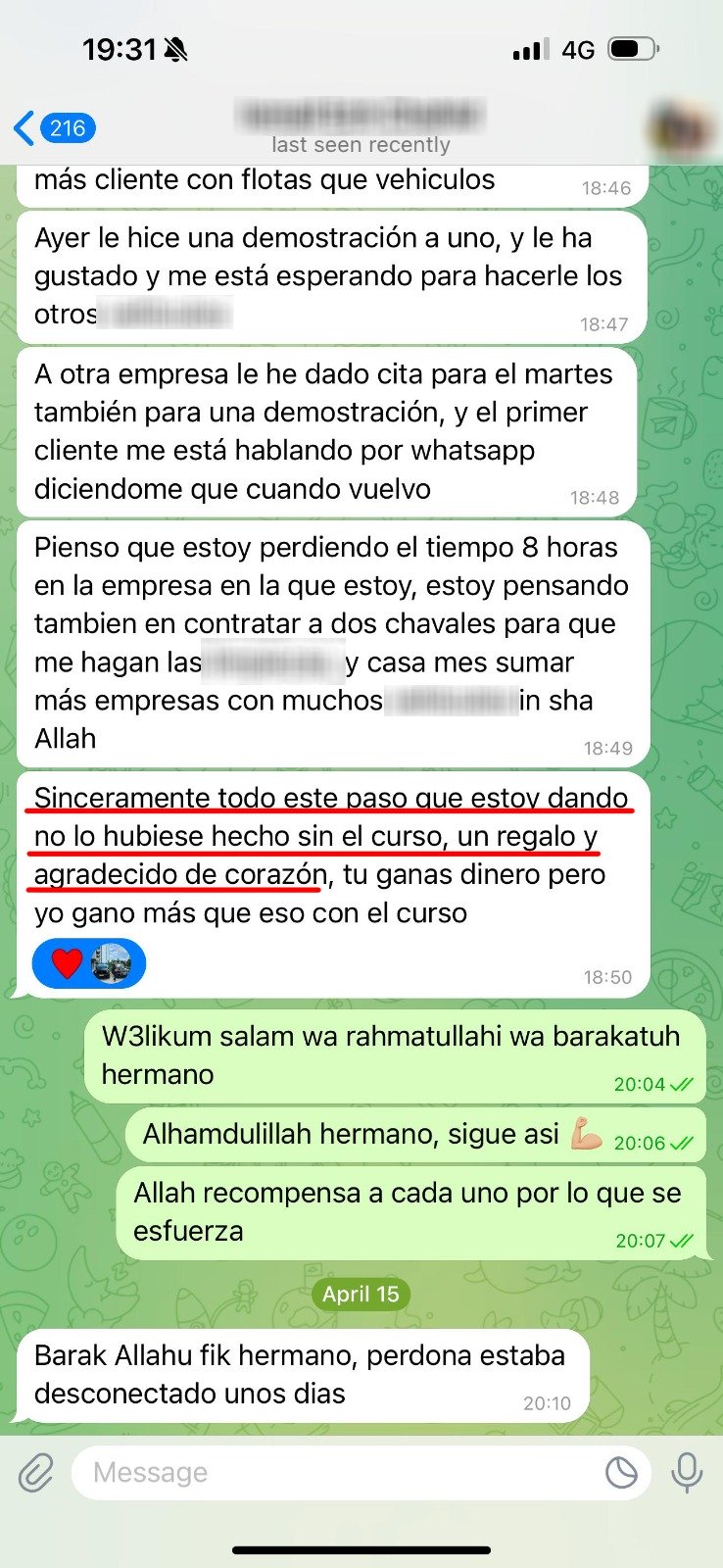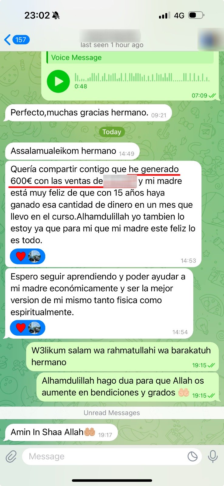 Tu progreso financiero depende de qué tan diligentemente te apliques y de la voluntad de Dios. Algunos estudiantes recuperan su inversión en pocas semanas, pero no hay garantía de ganancias; el éxito viene del esfuerzo y asegurándose de que los métodos que uses sean halal y libres de interés (riba).